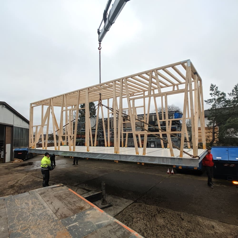 2. Wo werden die Ketten/Gurte/etc. angebracht? Müssen Zwingen oder Traversen am Haus befestigt werden? → es ist wichtig dafür zu sorgen, dass alle Hilfsmittel zum Verladen vorhanden sind, und dass diese auch beim Abladen wieder vor Ort sind.