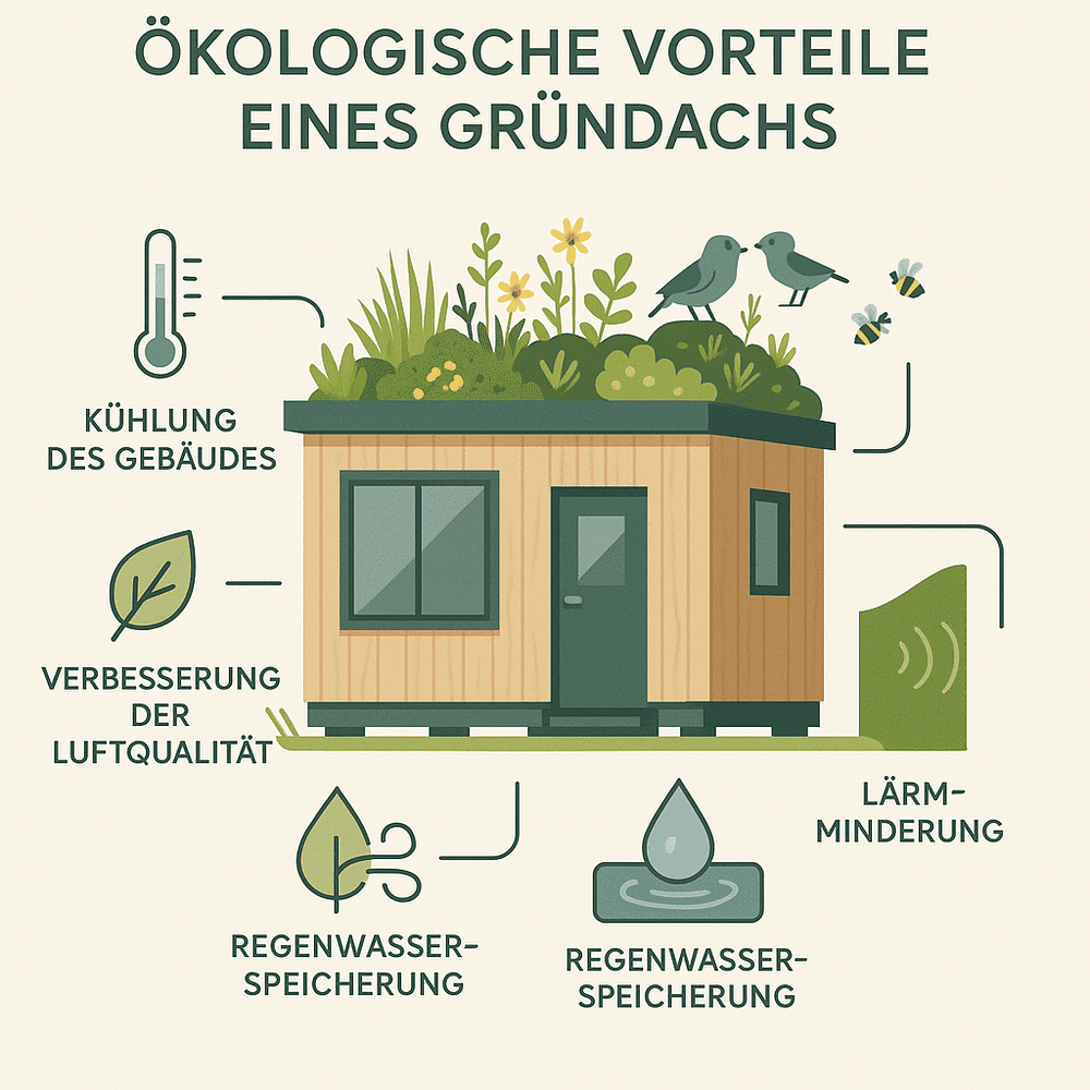 Ein Gründach schafft Lebensraum für Pflanzen, Insekten und kleine Tiere – selbst auf wenigen Quadratmetern. Es fördert die Artenvielfalt, wirkt positiv aufs Mikroklima und unterstützt die ökologische Balance. Zusätzlich kann ein Gründach Regenwasser speichern und den Ablauf verzögern. Damit leistet es auch einen kleinen Beitrag zur Entlastung von Kanalisation und Umgebung – ein Pluspunkt für alle, die nachhaltig bauen und wohnen wollen.